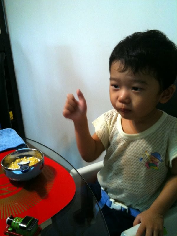For dinner, we went to Ah Gong & Ah Ma's place.. And lucky Lucas ate a big bowl of rice and 2 strawberries for dessert. He had not been eating on Day 1 and was only surviving on milk... =.='''