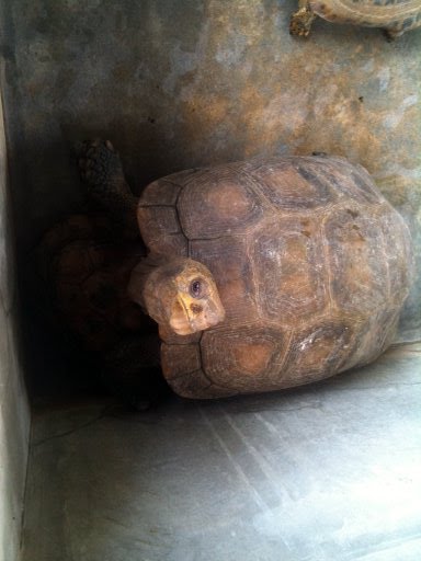 Lucas was pretty apprehensive initially.. He kept thinking that the turtles and tortoises would climb out of the tanks to chase him...